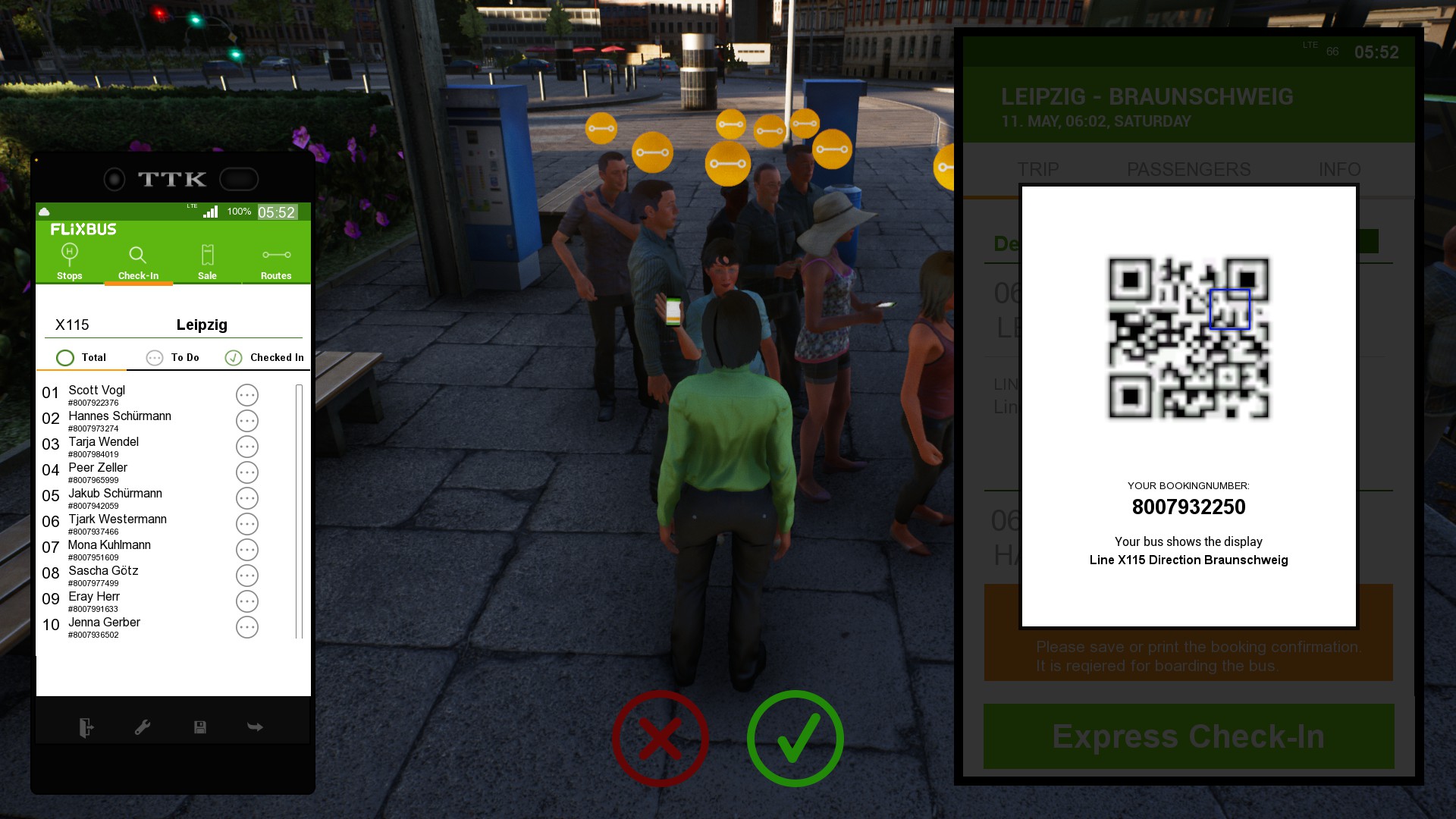 미리 예매한 사람은 이렇게 QR코드를 찍고 표를 구하지 못 한 승객은 현장에서 바로 티케팅해줍니다.